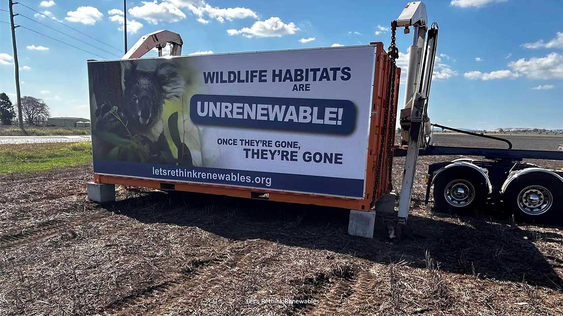 These are some of the billboard banners that we've put out. We've got one just near Ipswich. There's one at Rocky, at Biloela, and there's one on the way out to the Borumba Pumped Hydro Project where all workers have to go past every day. So they're all talking about the pillars that the communities are trying to actually save. And these are all being donated and it's about getting the message out there.